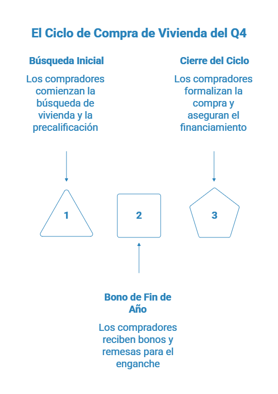 • Maduración de la Demanda: Los clientes que iniciaron su búsqueda y precalificación de crédito en el Q3 (julio/agosto/septiembre) llegan al Q4 (octubre/noviembre/diciembre) listos para el cierre final de la compra. Las ventas que se concretan en esta época son la culminación exitosa de un ciclo de planificación financiera y legal.
